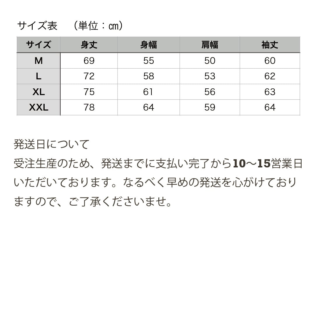 受注生産のため、支払い完了から発送までに10〜15営業日いただいております。